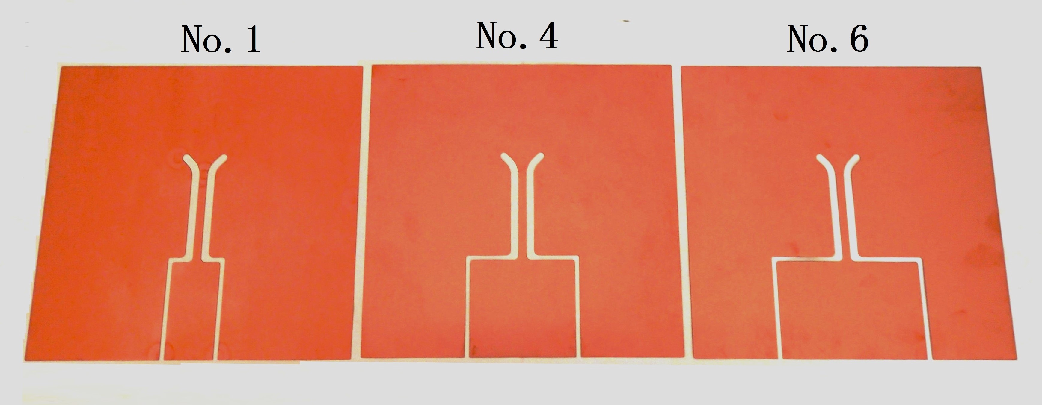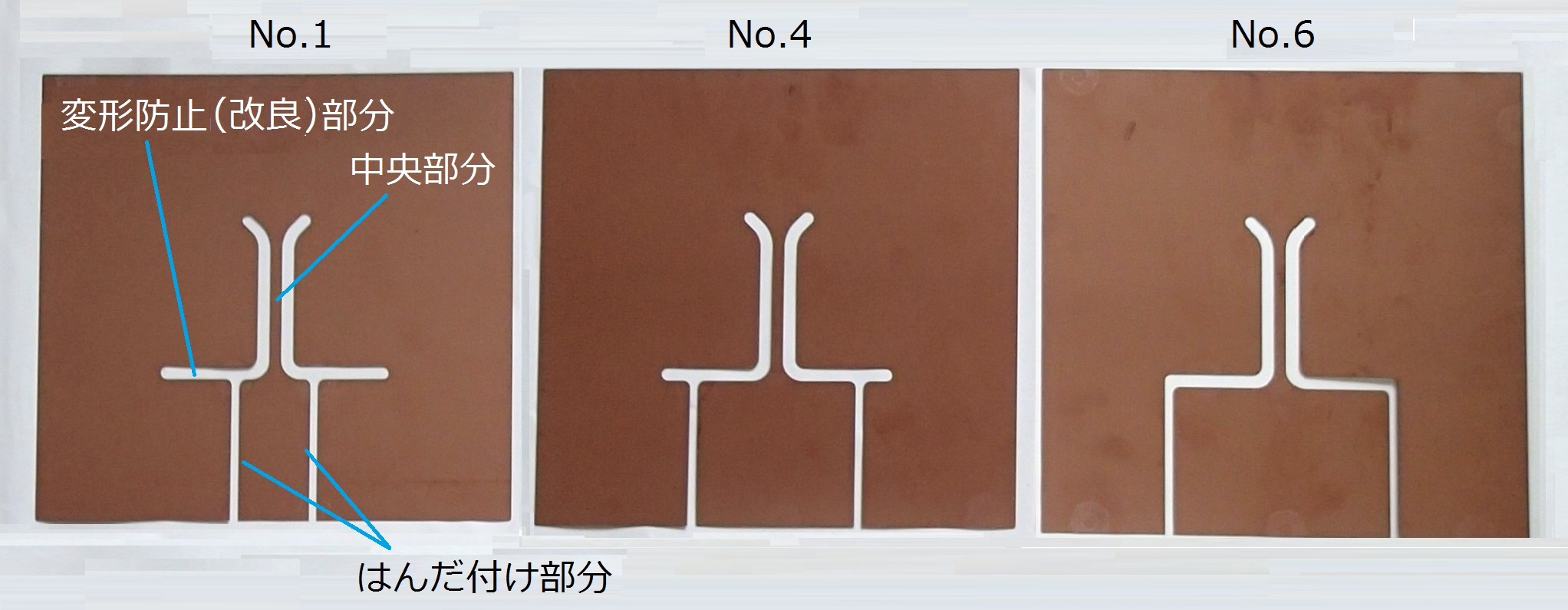図9.9 平板状6ターンコイルの実験後に分解したコイル板(No.1〜No.6)の外観例
