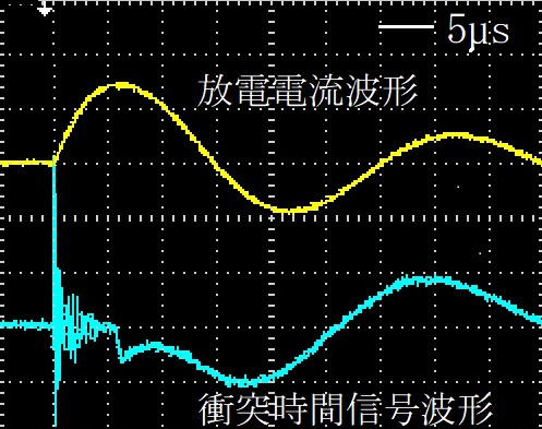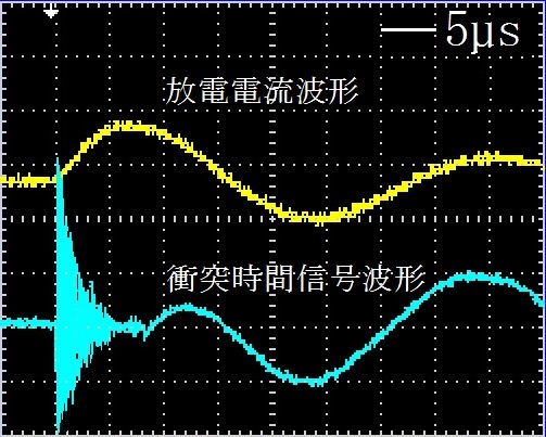 衝突時間信号波形には放電開始時に放電ノイズが生じたが,衝突するまでの時間は約6μs であった.